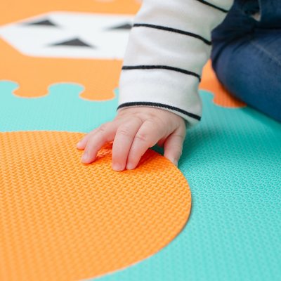 Zaštitna mekana podloga za bebe, djecu (za previjanje, bezbrižno držanje djeteta na podu, za igru, za puzanje) Dijelove podloge je moguće djelomično preklopiti, pa se može zaštiti namještaj od dohvata djece do visine 40cm, na balkonu (dijete se neće penjati na ogradu i bacati igračke s balkona, istovremeno štiti dijete od sunca)Kontrastne puzzle za razvoj čula vida i memorije kod najmlađih;Kontrastne puzzle za razvoj čula vida i memorije kod najmlađih;